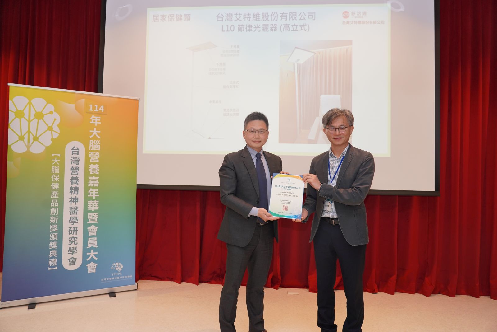 「台灣艾特維股份有限公司」代表領獎 本屆大腦保健創新產品獎獎盃及獎狀
