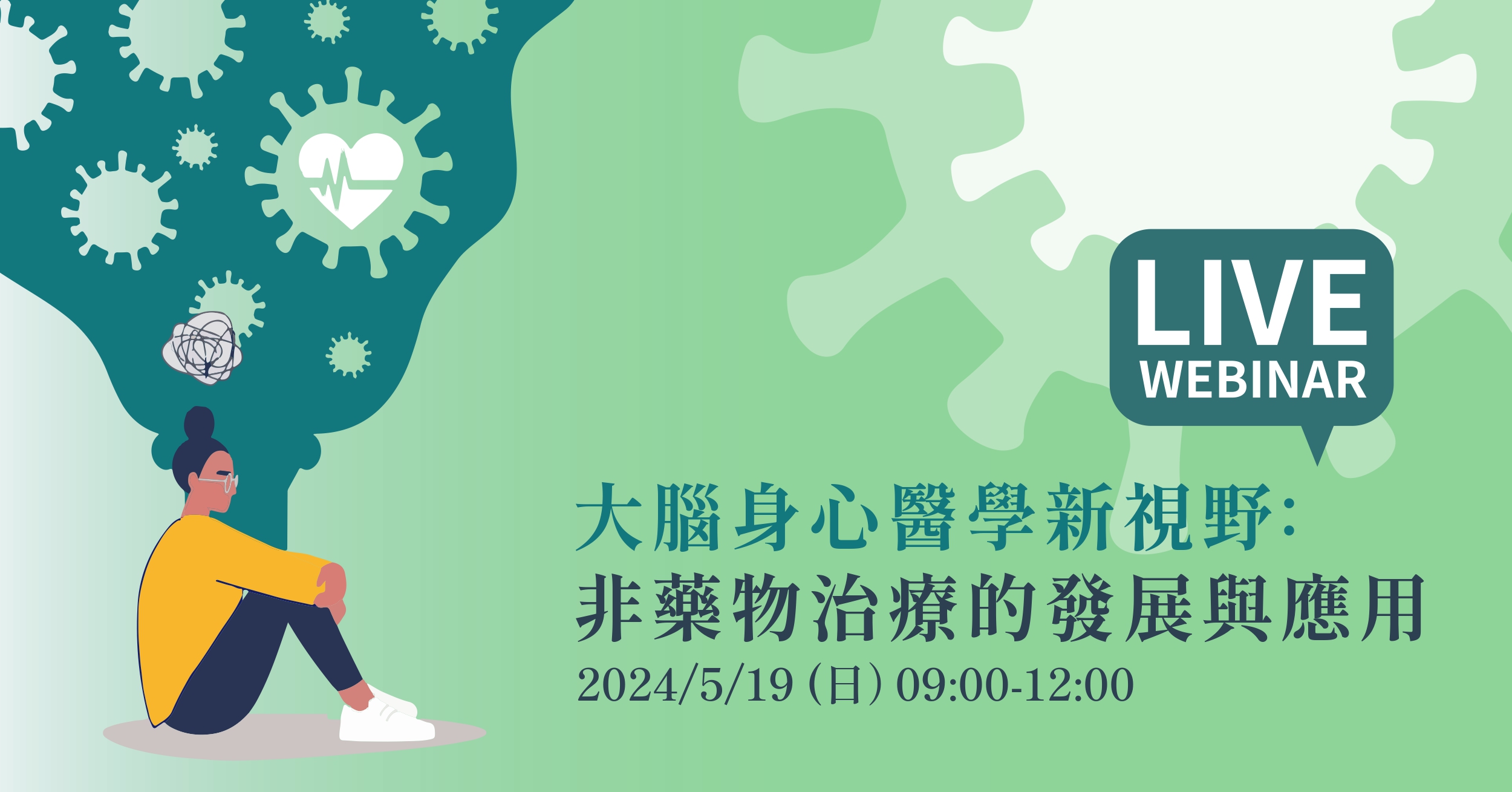心理健康問題預估造成全球破兆經濟損失,台灣破百萬人有身心困擾,由於身心問題的複雜性,及傳統藥物治療的侷限性,因此越來越多研究針對身心疾患找尋非藥物解方,如營養、正念、運動、光照等,結合心理、社會及生活型態的整合,達到安全且有療效的身心照護模式,才能有效預防、及早介入、有效治療、預防復發,以全面守護大腦身心健康。