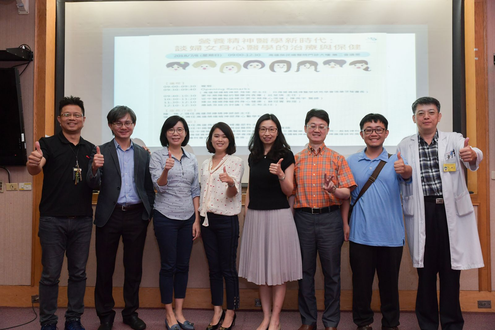7 月8日講座移師高雄並與高雄榮民總醫院精神部共同主辦,主題為「營養精神醫學新時代:談婦女身心醫學的治療與保健」。以婦女各階段常見的的身心問題為主軸,進行一場跨領域的對話,包括高雄長庚婦產部莊斐琪科主任、中國醫藥大學中醫部陳亮宇醫師及精神科主任暨中國醫藥大學醫學院蘇冠賓副院長,從藥物、飲食及營養切入,提供治療、預防及日常保健360度整合照護婦女身心的健康!