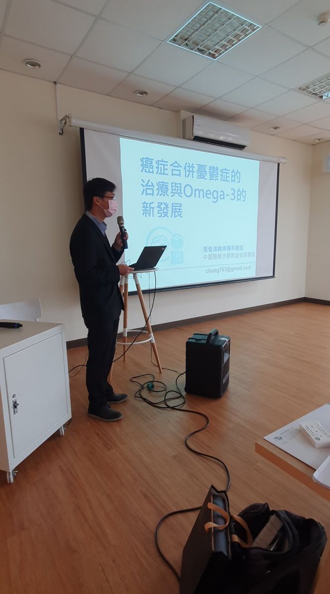 此次活動由本學會蘇冠賓理事長擔任座長,以豐富的臨床醫療經驗,結合此次心與腦雙主軸,穿針引線三大主題,提供更多啟發與新觀念。首場演講由安南醫院精神科張俊鴻主任分享經研究及臨床實驗證明Omega-3於癌症合併憂鬱症治療的新契機,緊接著由中醫大北港附醫谷大為醫師帶領大家一同回顧制定「Omega-3脂肪酸於憂鬱症治療之臨床指引」的過程,分享其運用Delphi Method的研究方式彙整分析國內外文獻、凝聚國際專家共識所進行的 「Omega-3脂肪酸於憂鬱症治療之臨床指引」 ,在此制定過程中激盪出的火花,也期望此臨床指引發表後,對於憂鬱症現有醫療能發展出更安全有效且全面的醫療照護。最後由高醫大心臟內科朱志生醫師分享Omega-3於高三酸甘油脂 (TG) 高脂血症及心血管疾病患者之治療新趨勢,從疾病本質與致病機轉切入,由研究結果顯示高濃度Omega-3,同時也可減緩焦慮症狀,對於心血管相關疾病能有正面影響。