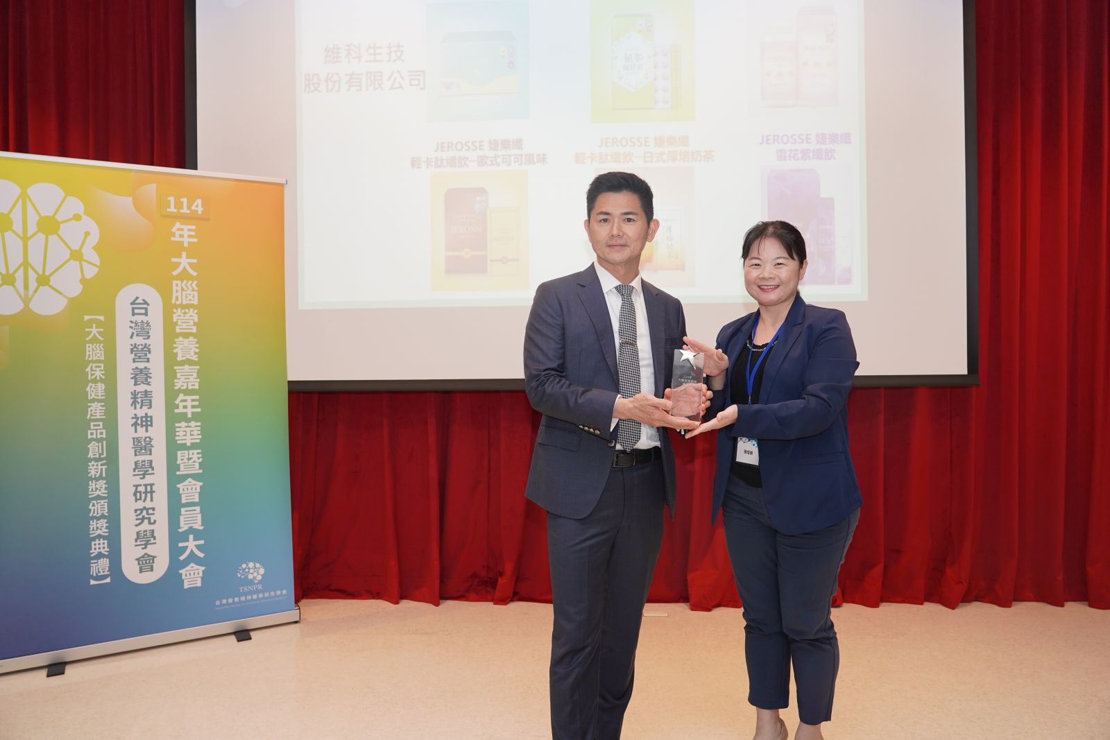 「台灣艾特維股份有限公司」代表領獎 本屆大腦保健創新產品獎獎盃及獎狀