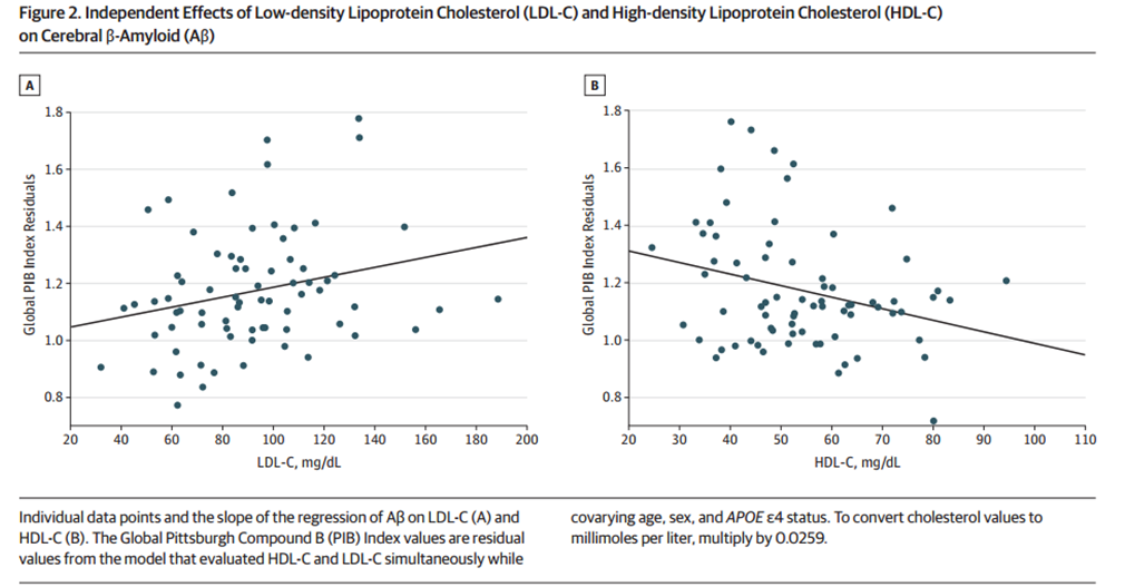 結果顯示在正子斷層掃描技術下,LDL-C數值與腦中β-amyloid沈澱成正相關,HDL-C數值與腦中β-amyloid沈澱成負相關相關。利用這個結果可作為未來預防阿茲海默症的參考。